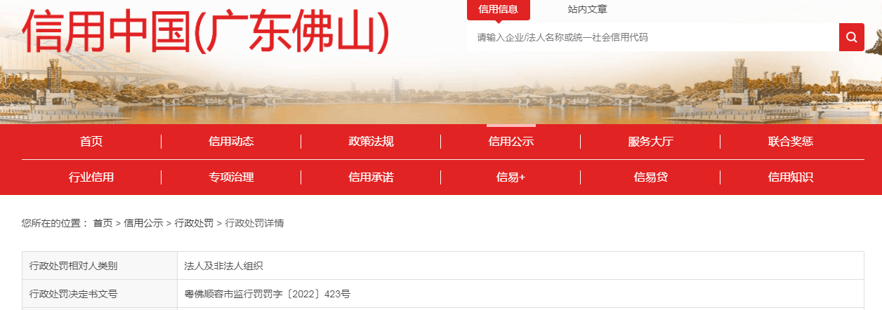 - 处罚机关佛山市顺德区容桂街道办事处