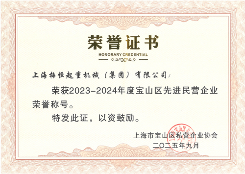 近日,2023-2024年度上海市宝山区先进民营企业表彰大会隆重召开,现场灯光璀璨,掌声阵阵,来自宝山区各行业的优秀民营企业家齐聚一堂,共同见证这份属于民营企业的荣耀时刻。会上,上海梅恒起重机械(集团)有限公司(以下简称“梅恒集团”)凭借在产业创新、社会责任等领域的突出表现,被上海市宝山区私营企业协会(业务隶属上海市宝山区市场监督管理局指导)授予“2023-2024年度上海市宝山区先进民营企业”荣誉称号。在热烈的掌声中,梅恒集团营运总裁陈林先生稳步走上领奖台,接过这份沉甸甸的荣誉证书,这既是对企业发展成就的高度认可,更是对其使命担当的有力彰显。