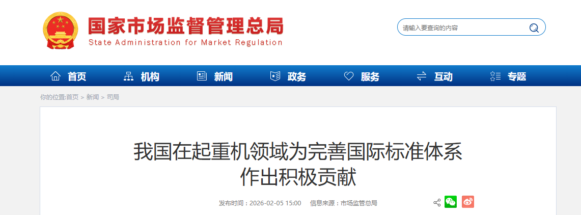 近日,我国牵头的《起重机 工作级别 第4部分:臂架起重机》ISO国际标准正式发布。“十四五”期间,全球起重机领域共发布18项国际标准,其中9项由我国牵头制定,为国际标准化发展贡献了中国力量。